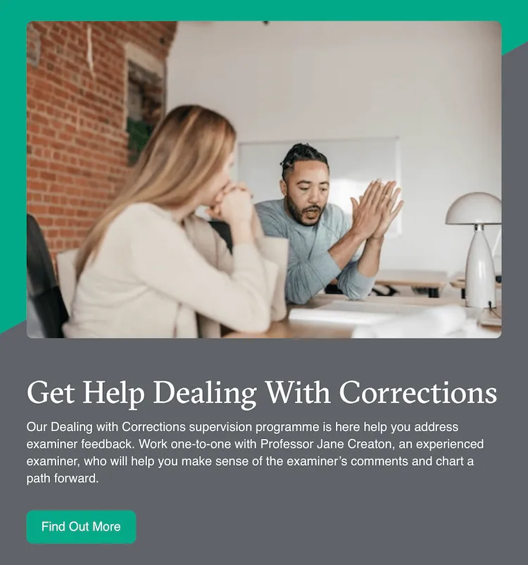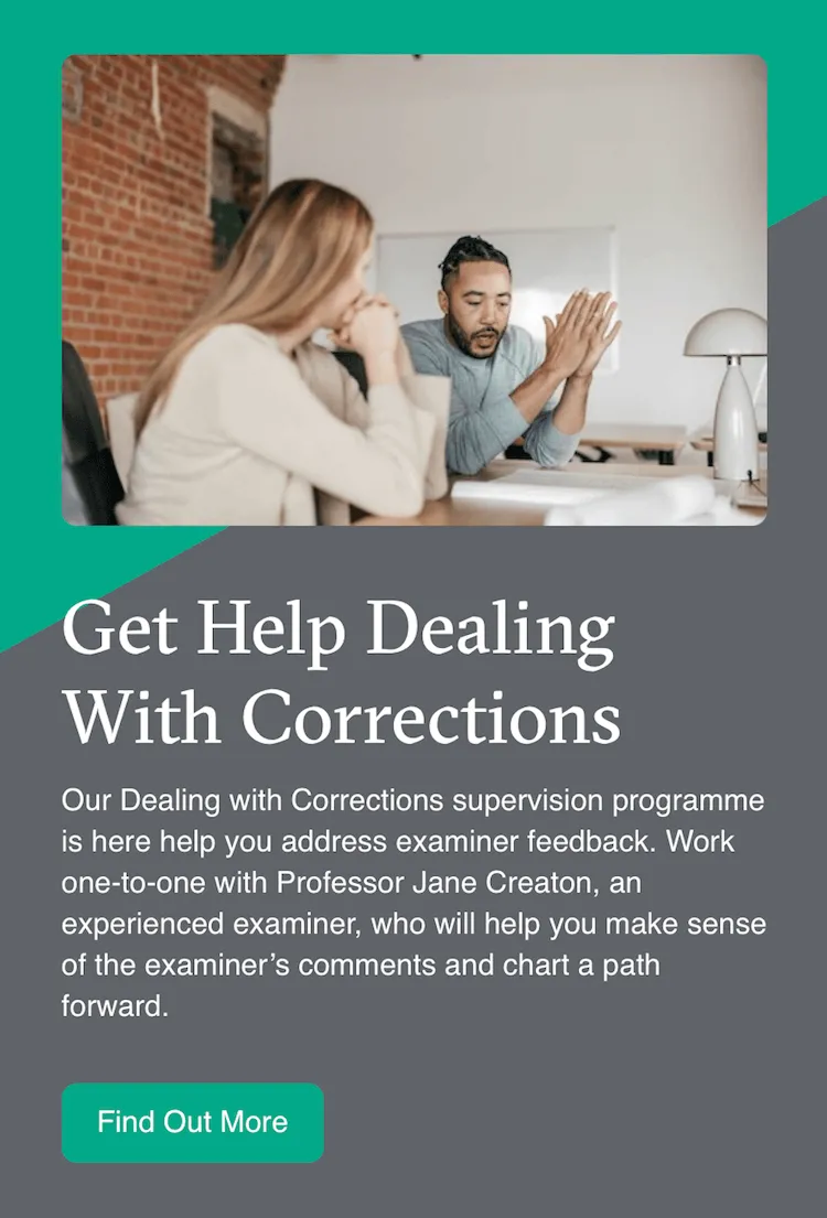 If you’d like some on-to-one support to help you make sense of your corrections, we offer one-to-one coaching. It’s your chance to work with an experienced supervisor to develop a plan of attack and feel more confident in your abilities. Find out more by clicking here.